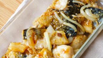 レシピ集 塩サバと玉ねぎのごまみりん焼き