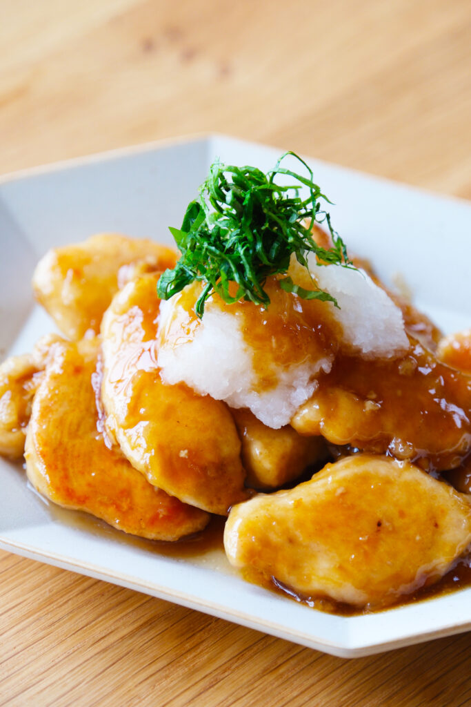 ワンパンでささっと作れる「鶏むね肉の照旨おろしポン酢だれ」。味付けはポン酢を使ってとっても簡単♪照りっとしたポン酢だれに大根おろしと青じそを添えれば、絶品おかずの完成です☆パサつきがちな鶏むね肉は片栗粉をまぶしてしっとり仕上げて。香ばしさもプラスされてとってもおいしいですよ♪ぜひ作ってみてくださいね!