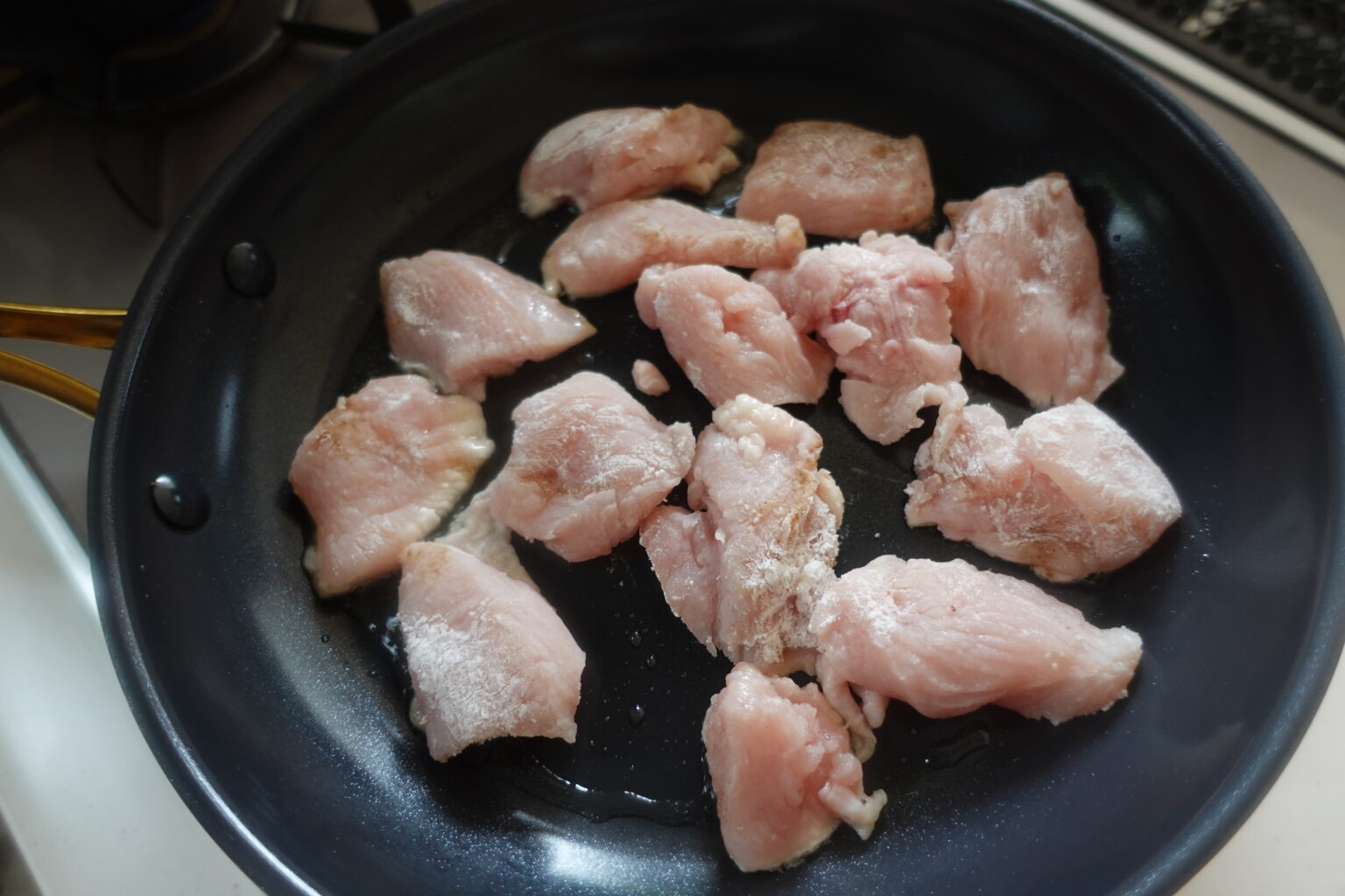 ・片栗粉をまぶすことで肉の旨みを閉じ込めます