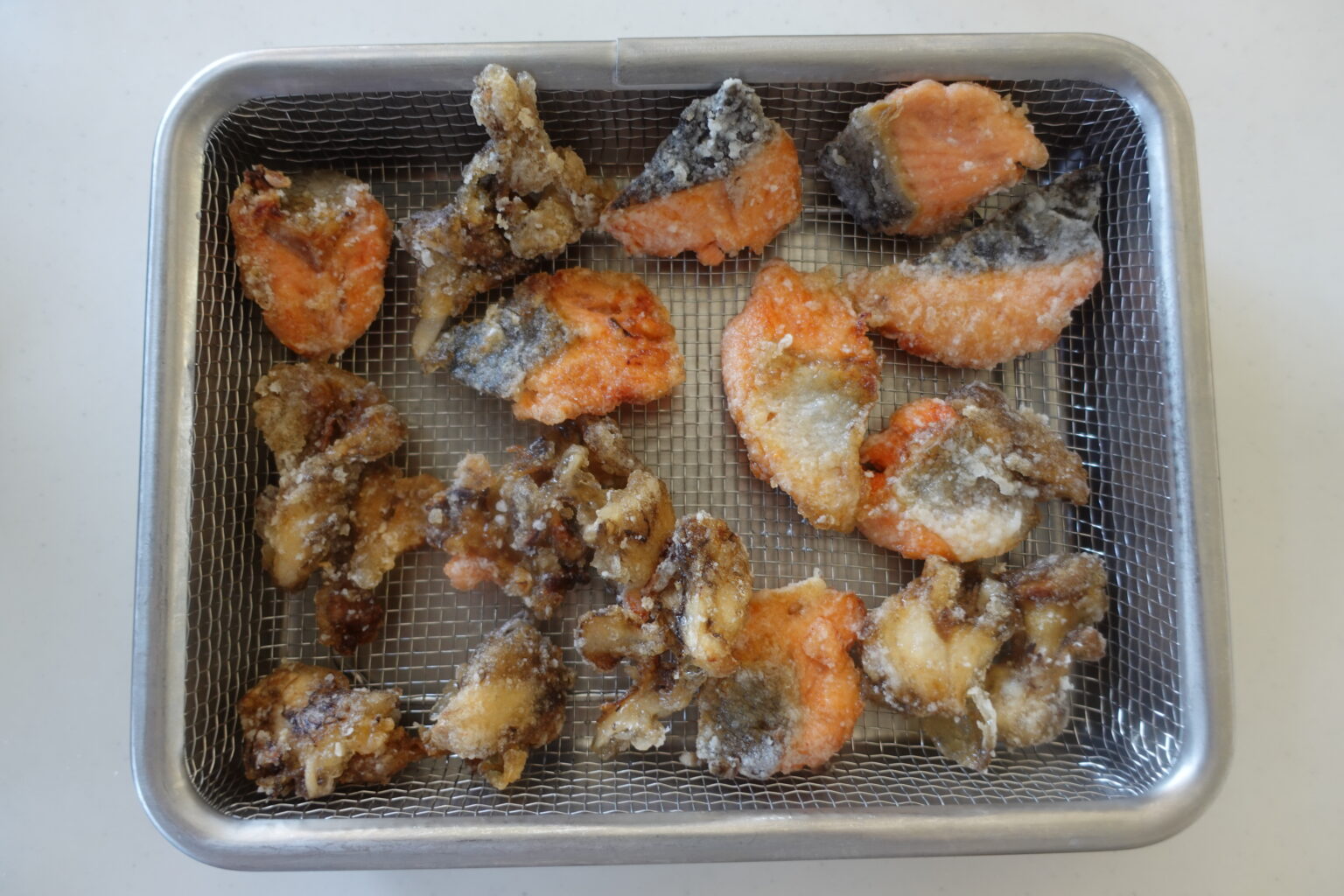 ・揚げたあとは網付きバットにあげてしっかり油切りをしてあげることでサクッとした食感を楽しめます。