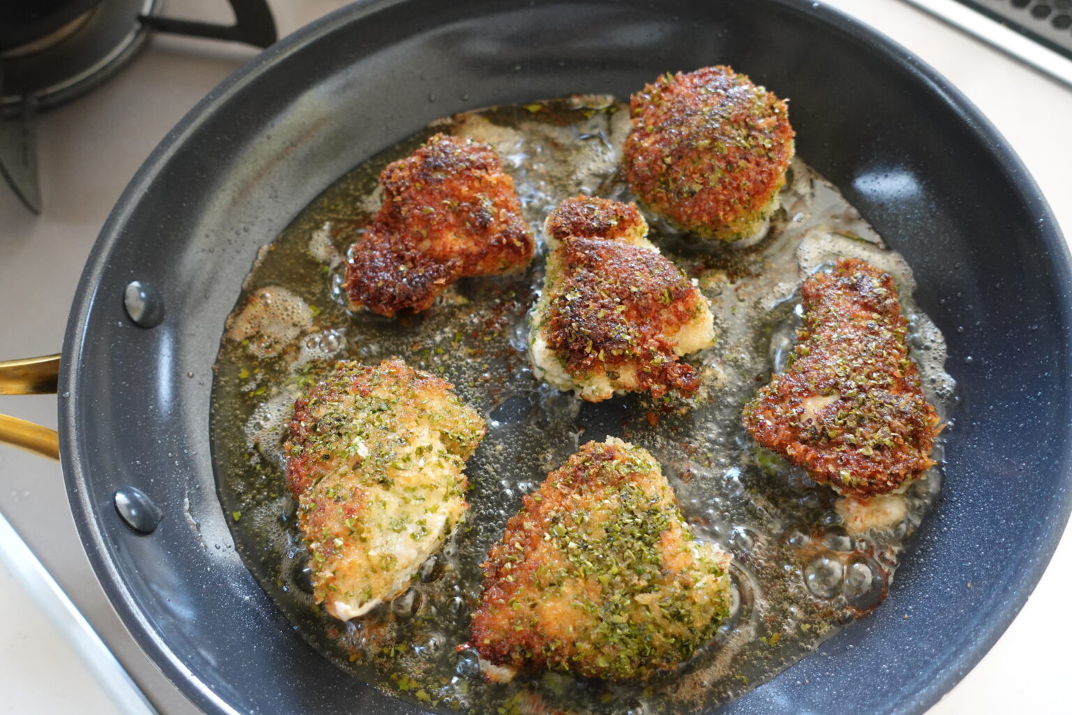 フライパンに油を熱し、2を並べて揚げ焼きにする。