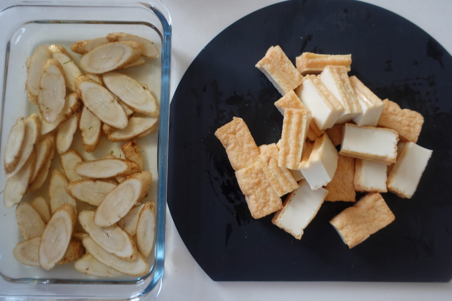 ・メインのおかずになるように厚揚げをたっぷり使う+ごぼうは3mm厚に切ることで食べ応えを出しています。