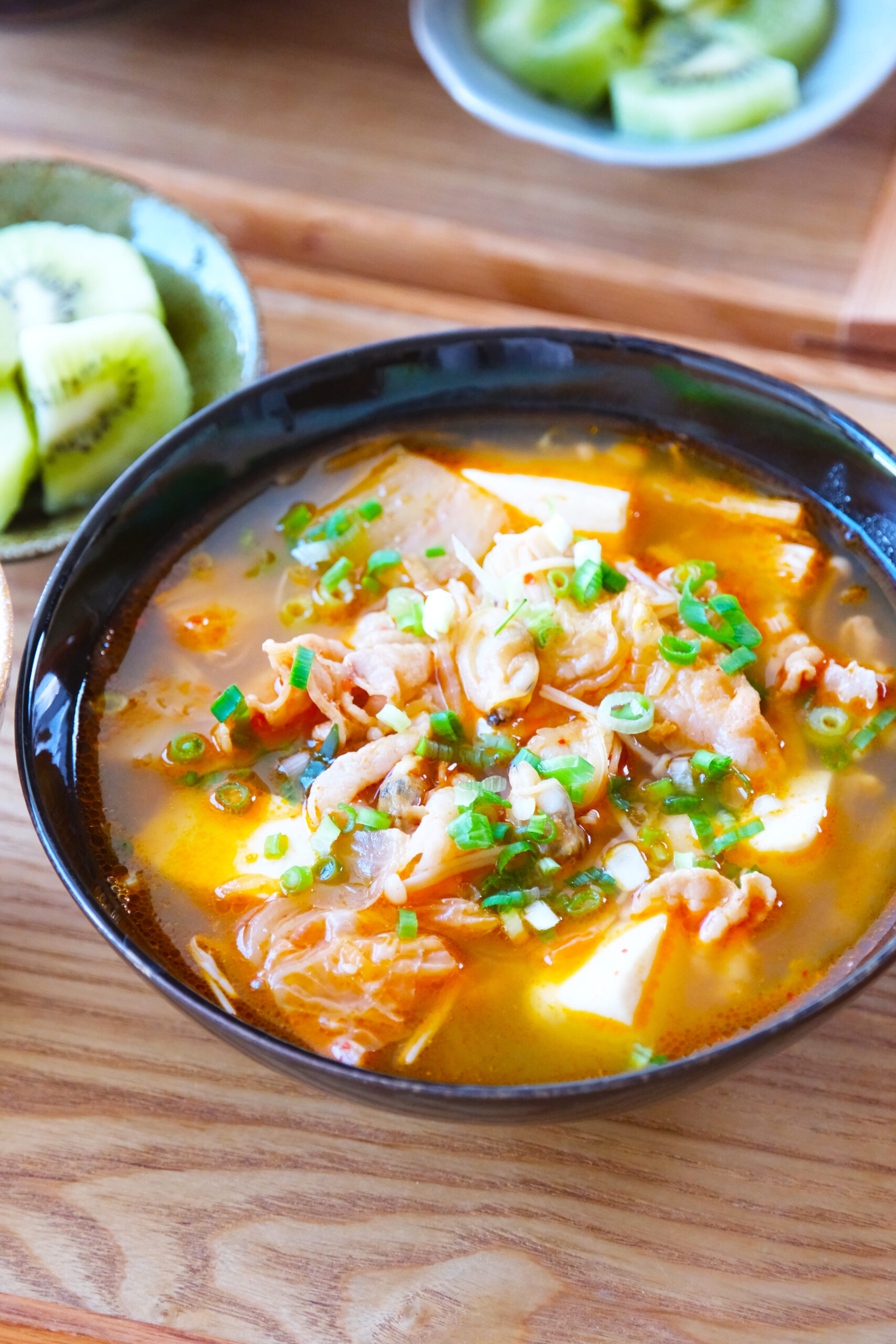 寒い日に食べたくなる「海鮮スンドゥブチゲ」。豚バラ肉やあさりを入れて旨みたっぷり♪具材をさっと煮込むだけで作れてとっても簡単ですのでぜひ作ってみてくださいね。