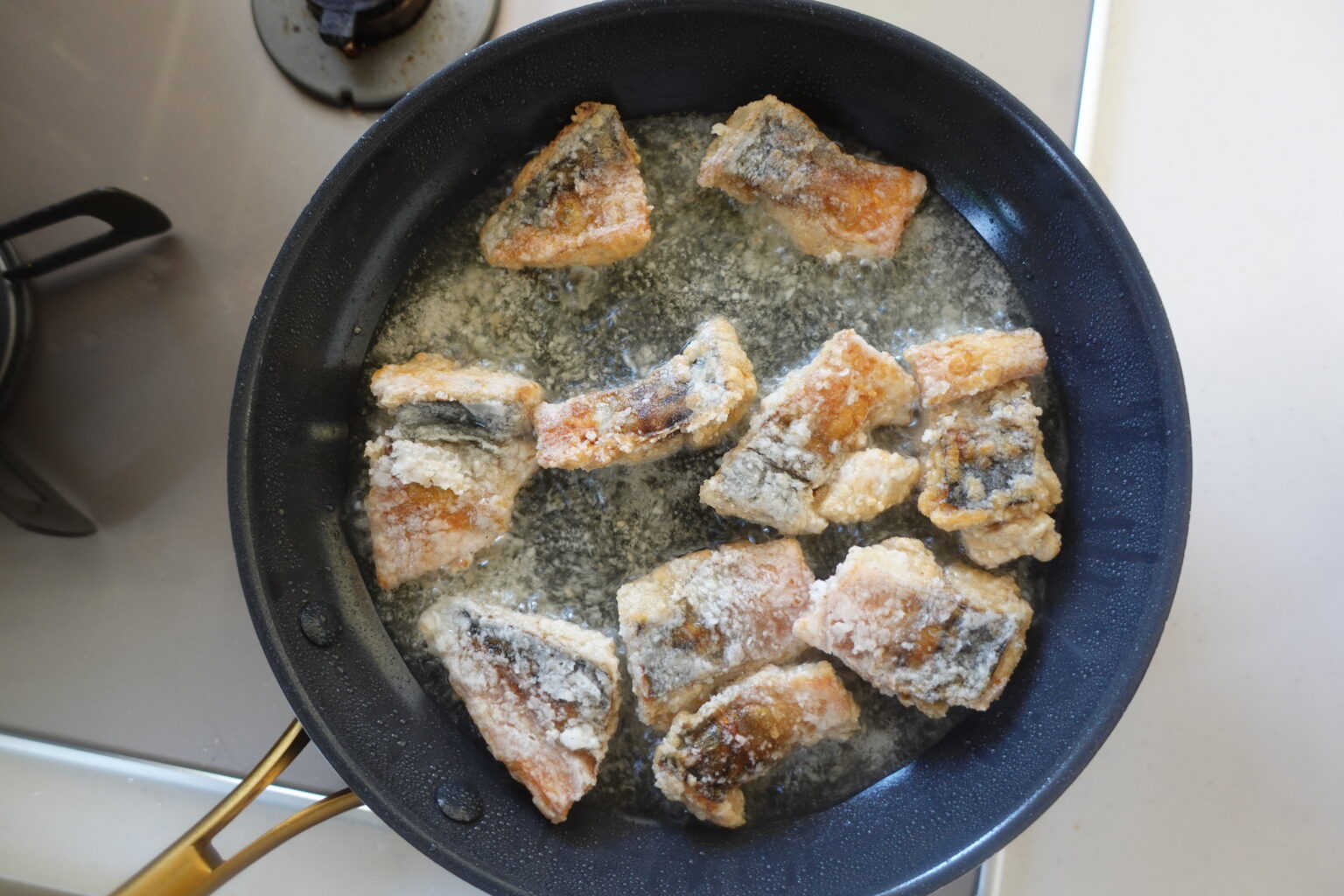 ・小さめのフライパンに底1~2㎝くらいの油で揚げ焼きにすれば油の節約&後処理を楽にできます。
