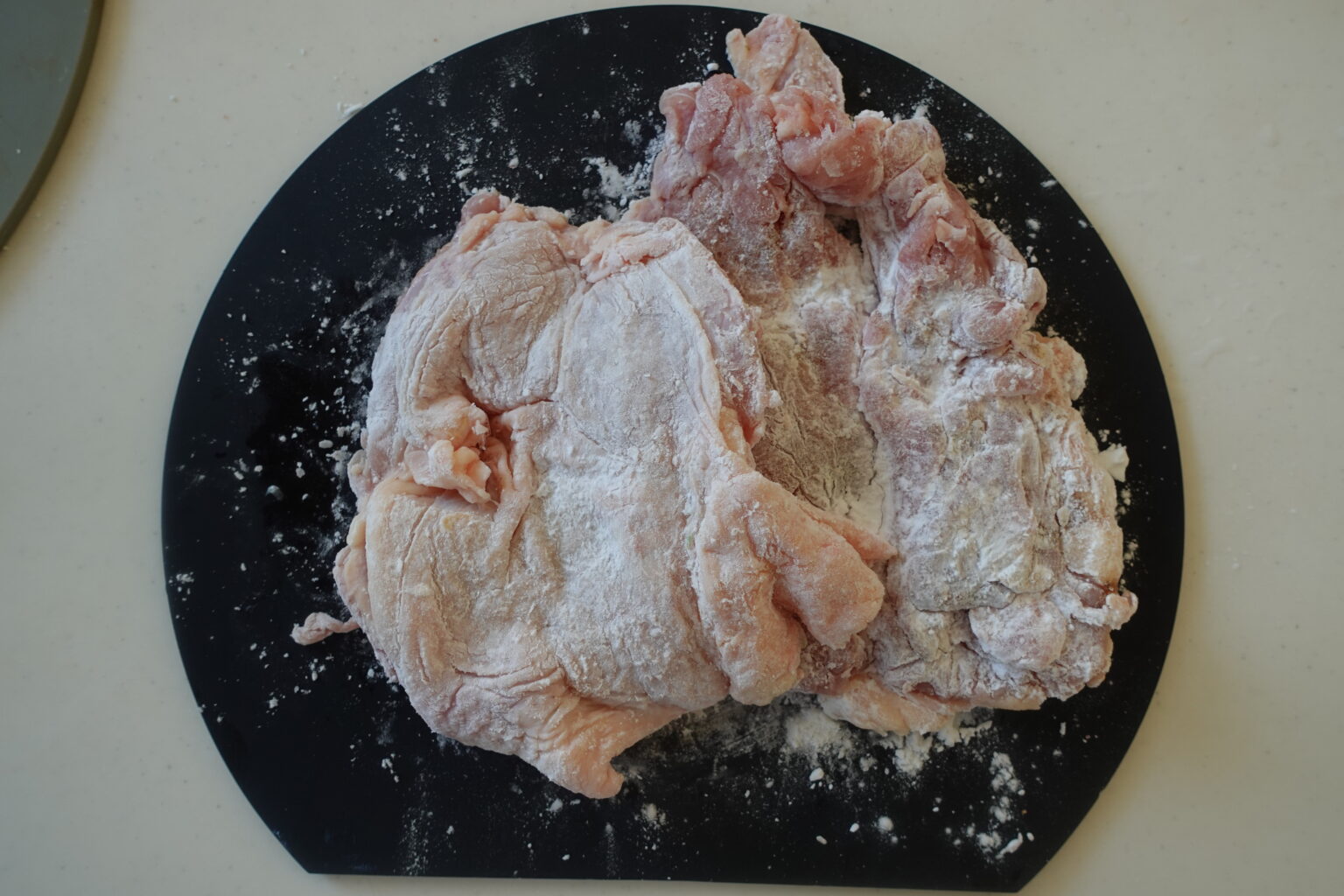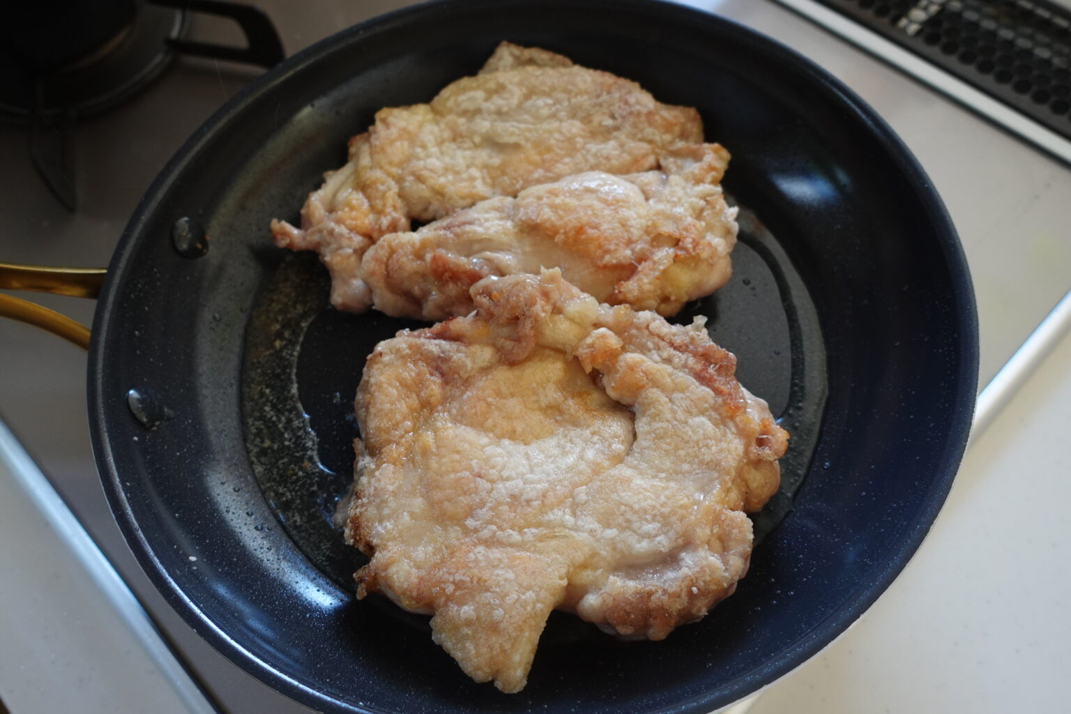 ・片栗粉をまぶすことで肉の旨みを閉じ込めます