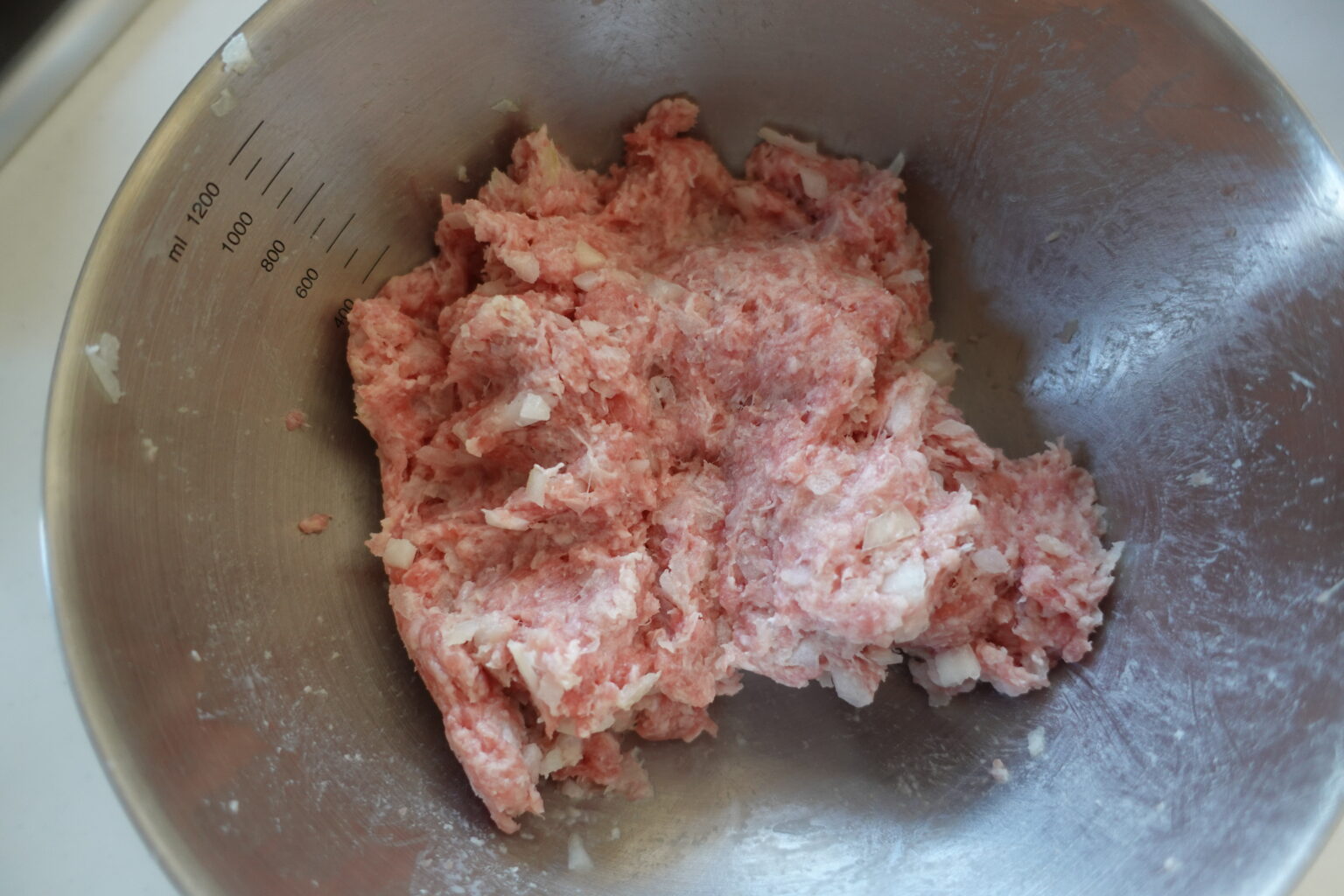 ・パン粉を混ぜるのは熱により流れ出そうになる肉汁や脂肪分をパン粉に吸わせて閉じ込める為です。