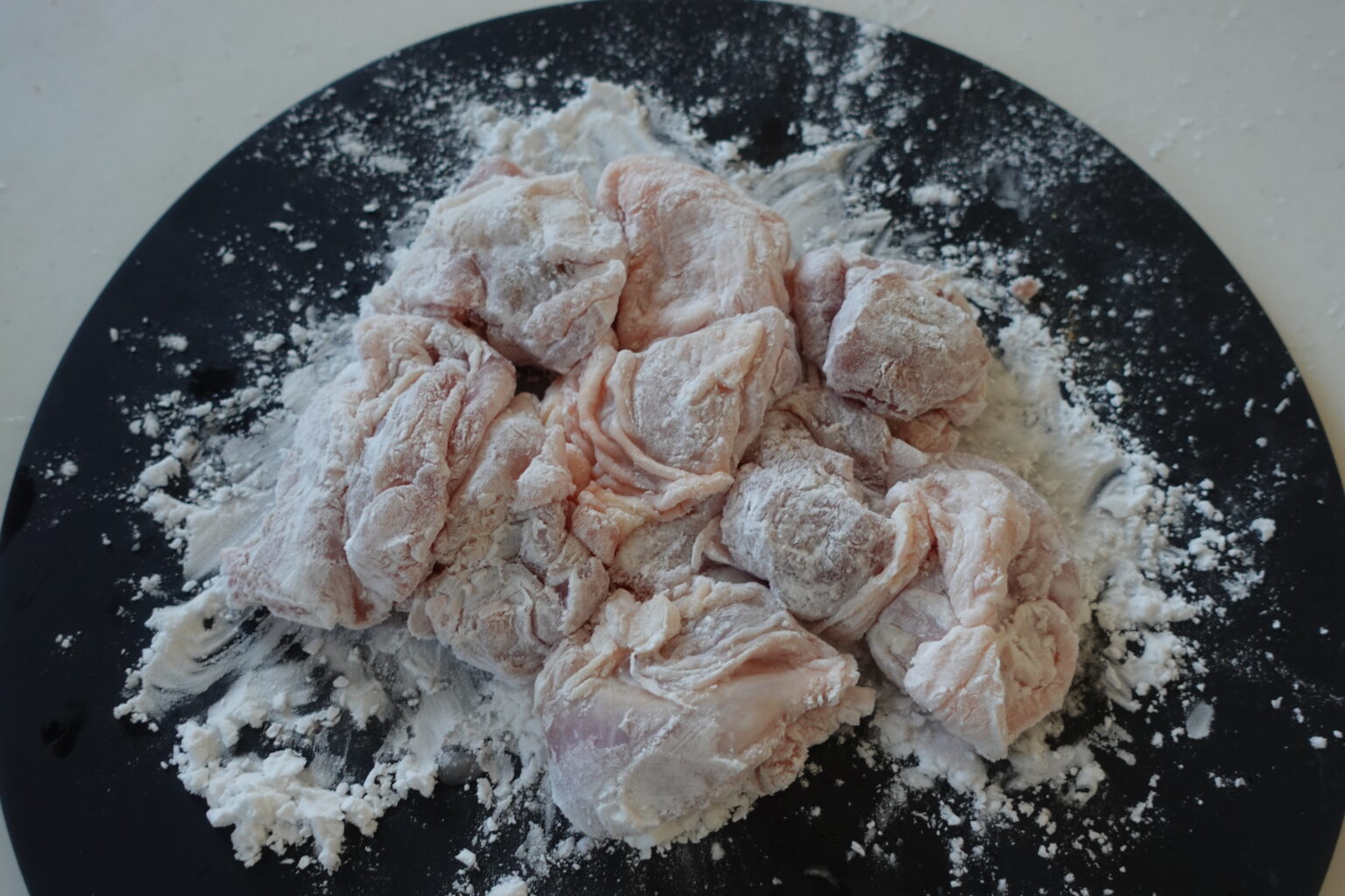 ・鶏もも肉に片栗粉をまぶすことでしっとりジューシーに仕上がります。