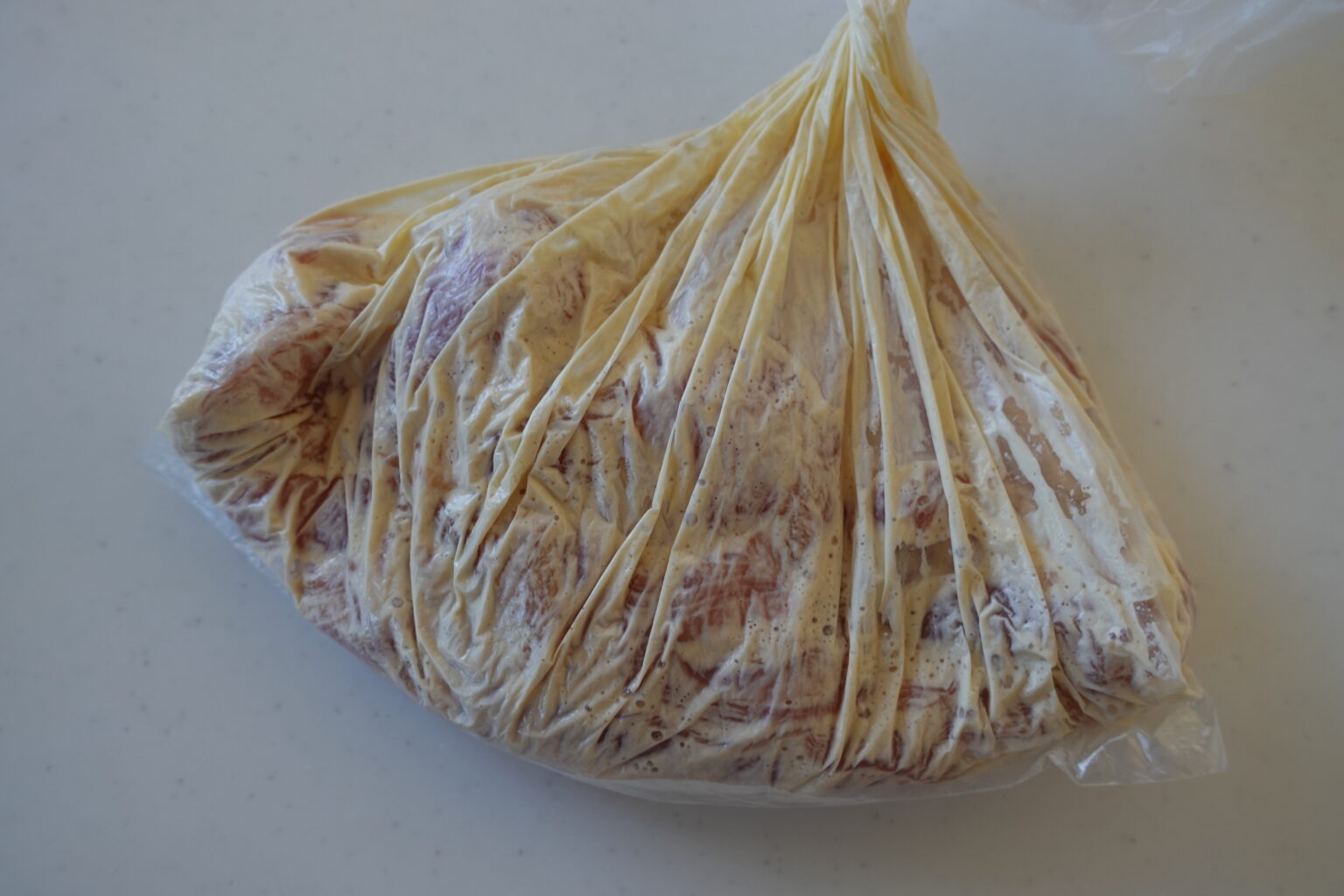 ささみはペーパータオルで水気をふき取り、筋を取る。縦半分に切る。ポリ袋に入れてAを加えて揉みこむ。