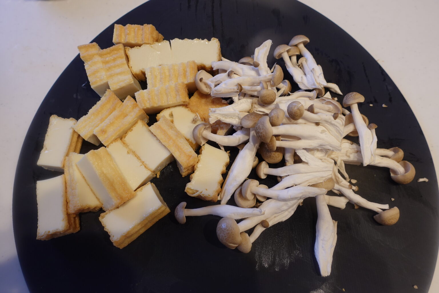 深めのフライパンにごま油を熱し、厚揚げを並べて焼き色がつくまで中火で炒める。さらにぶなしめじを加えてさっと炒め、蓋をして弱火で2~3分蒸し焼きにする。