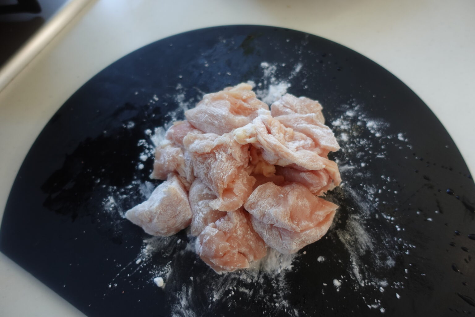 ・片栗粉をまぶすことで肉の旨みを閉じ込めます
