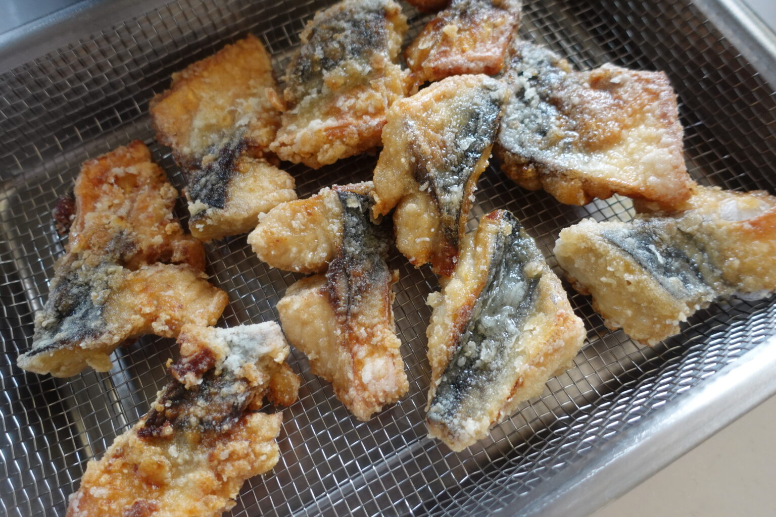 ・揚げたあとは網付きバットにあげてしっかり油切りをしてあげることでサクッとした食感を楽しめます。
