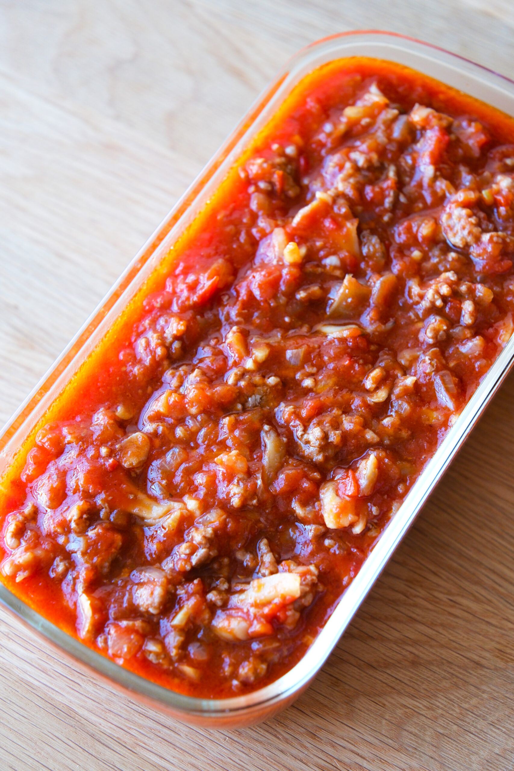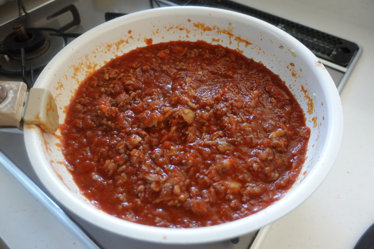 作り置きに便利な濃厚ミートソース。ポイントはたっぷりの玉ねぎと細かくほぐした舞茸です。舞茸を加えることでお肉の旨味がグンと引き立ち、短時間の煮込みでも奥行きのある味わいになります。パスタはもちろん、白いごはんにかけてドリアにしたり、厚切りトーストに添えたり。冷凍庫にあると安心する心強いストックおかずです!
