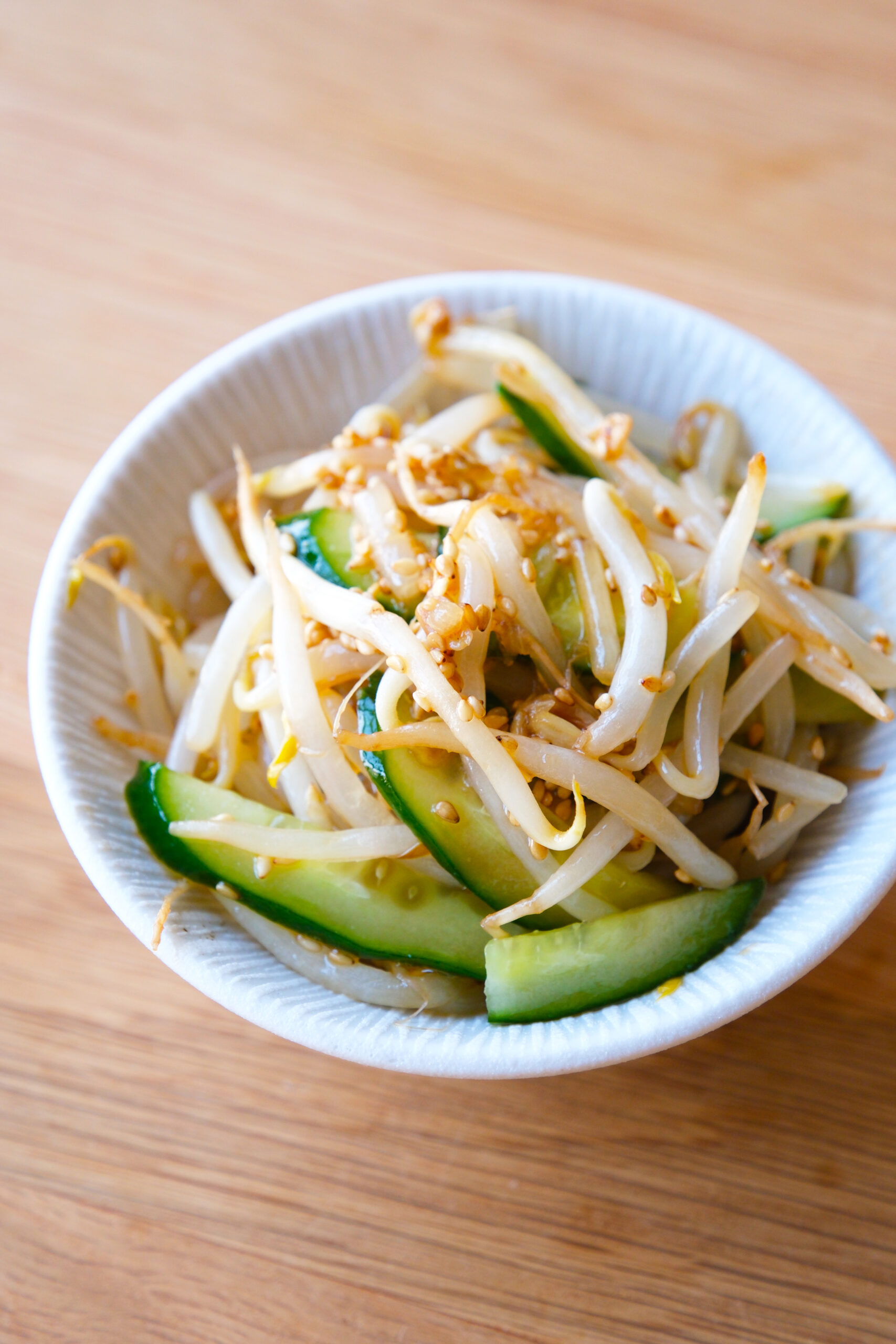 シャキッとしたもやしと、パリッとしたきゅうりの食感が楽しいさっぱりナムルです♪ごま油の香りとにんにくの風味が食欲をそそります◎ラー油はお好みで調整して、自分好みのピリ辛加減を見つけてくださいね。火を使わずに電子レンジだけで作れるので、暑い日やあと一品ほしいときにもぴったり!ぜひ作ってみてくださいね。