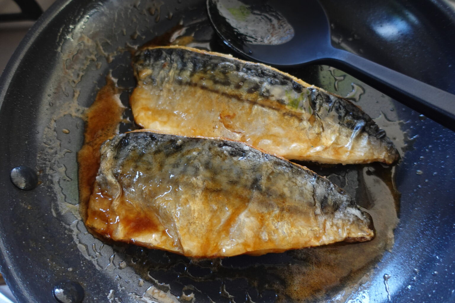 火が通ったら余分な油をペーパータオルでふき取る。Aを加え、スプーンで何度か魚にかけて味を染み込ませるように軽く煮詰める。器に盛りつけ、粗びき黒こしょうをふる。お好みでレモン(輪切り)をのせる。