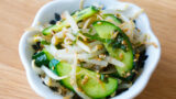 にんじんは千切りにする。耐熱容器にもやしとにんじんを入れて、ふんわりとラップをし、600W3分加熱する。ざるにあげて水気を切りながら粗熱をとる。