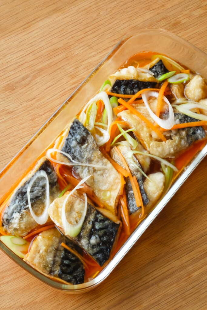 忙しい平日の夕食を助ける作り置きおかず。塩サバを一口大に切って揚げ焼きにするので少ない油で後片付けも楽チンです。骨取りサバを使えば、下処理も少なく時短できて、お子様も安心して食べられます◎時間が経つほどに味が馴染んでおいしくなるので週末の作り置きにぴったり♪野菜とタンパク質がとれるのも嬉しいポイントです。