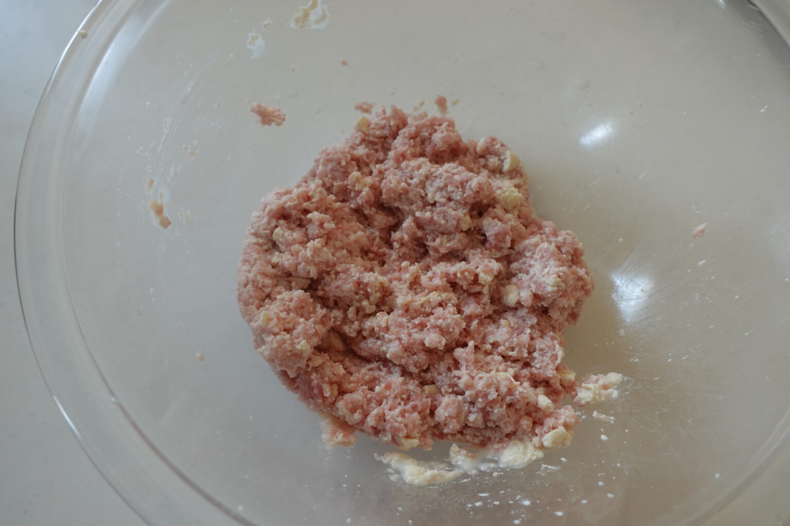 ・肉だねを形成するときは、生地に空気が入ったままだと焼いた時に膨らんで割れたり、中がパサついたりすることがあるため、空気を抜きながら丸めてくださいね