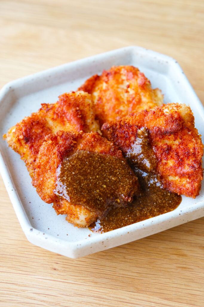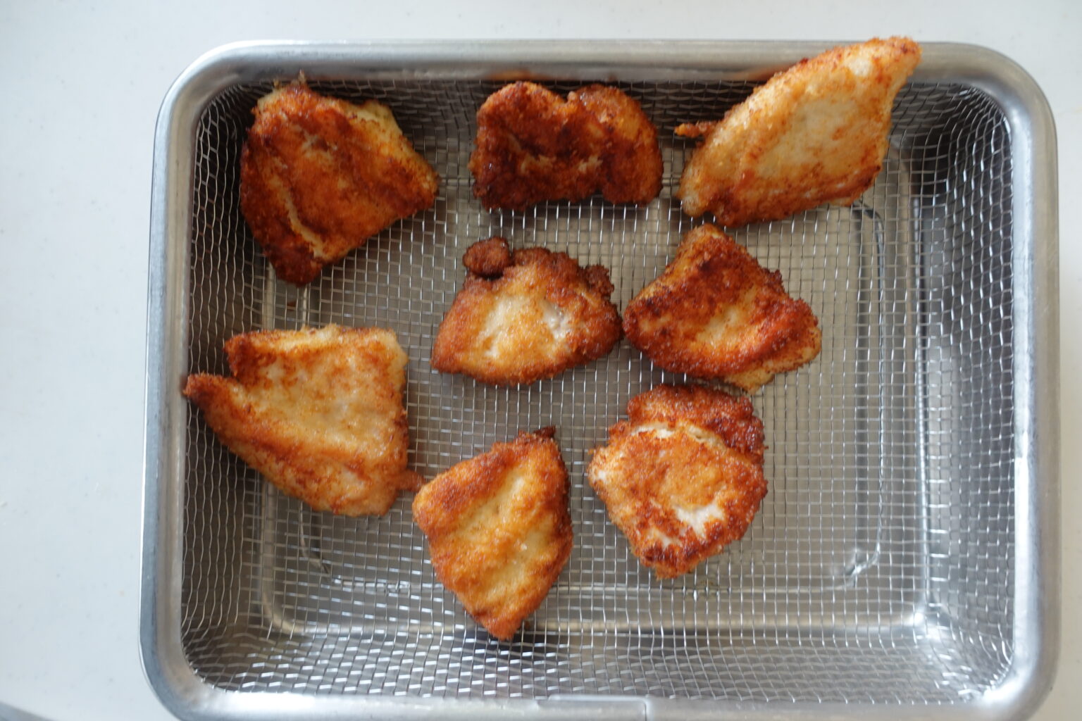 ・揚げたあとは網付きバットにあげてしっかり油切りをしてあげることでサクッとした食感を楽しめます。