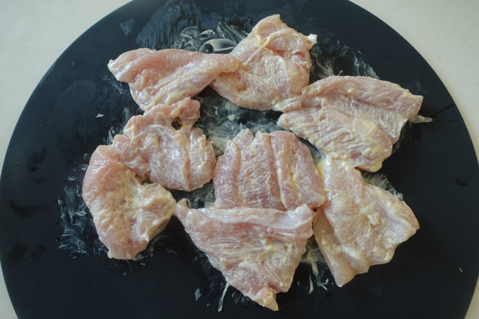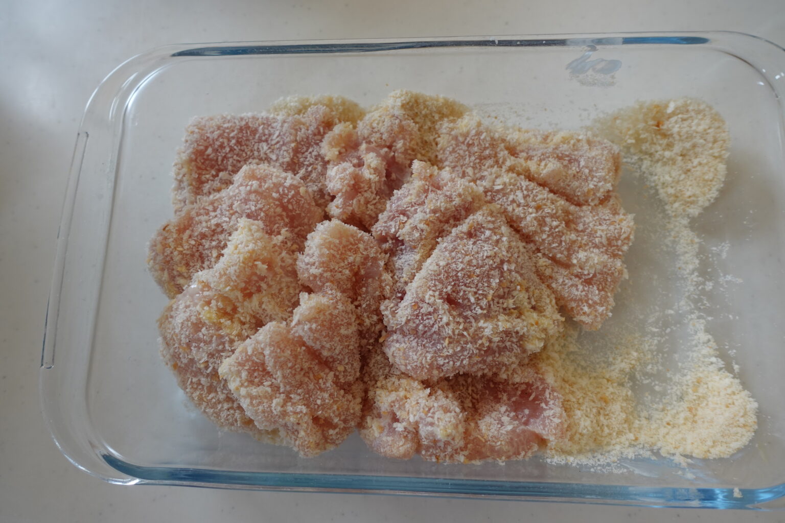 ・衣づけはマヨネーズで手軽に作れる&鶏むね肉のパサつきを抑えてしっとり柔らかに仕上げます