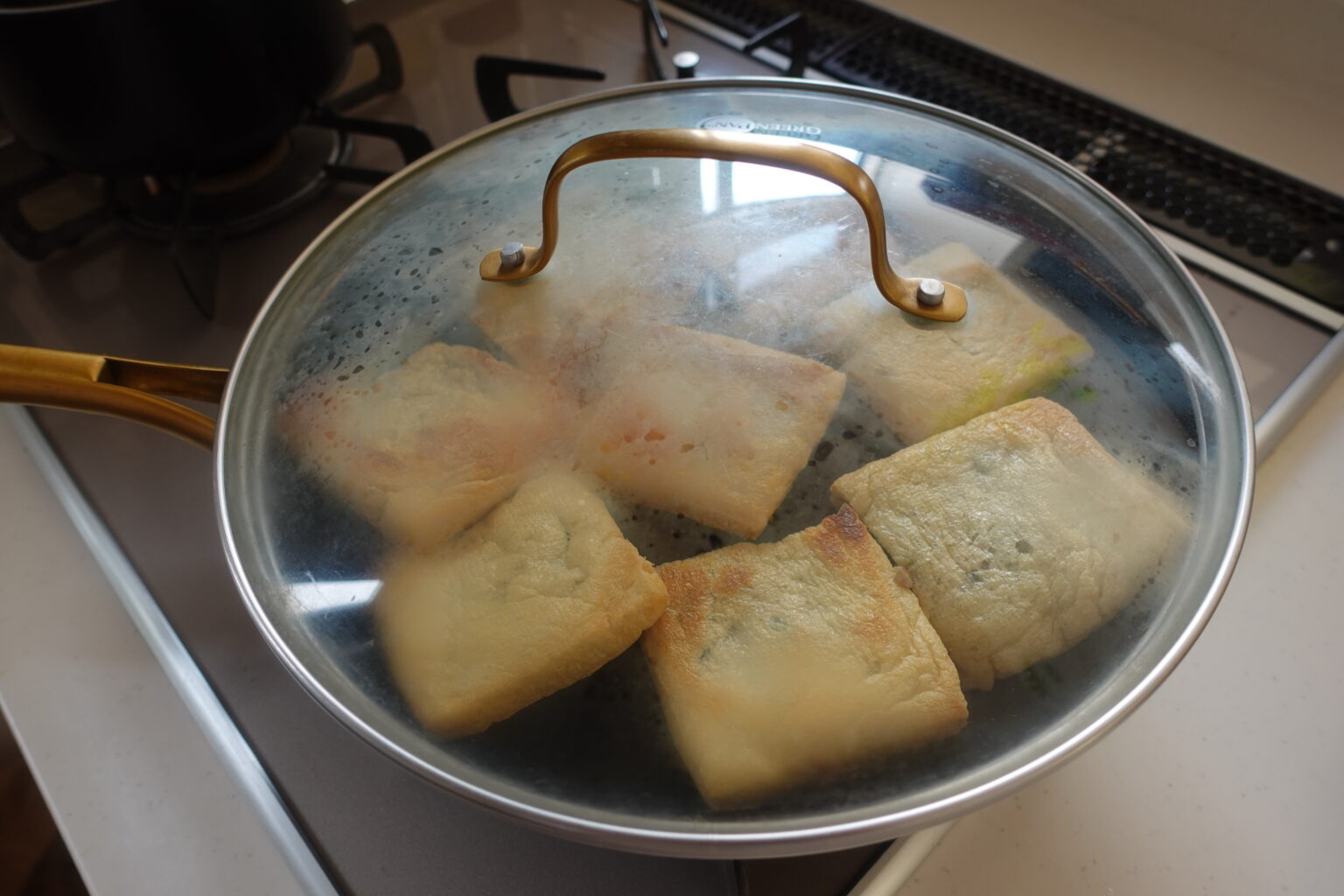 両面に焼き色がついたらふたをして弱火で7~10分蒸し焼きにする。