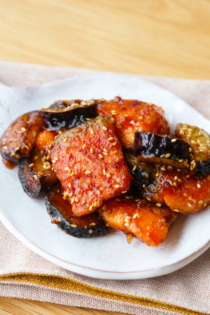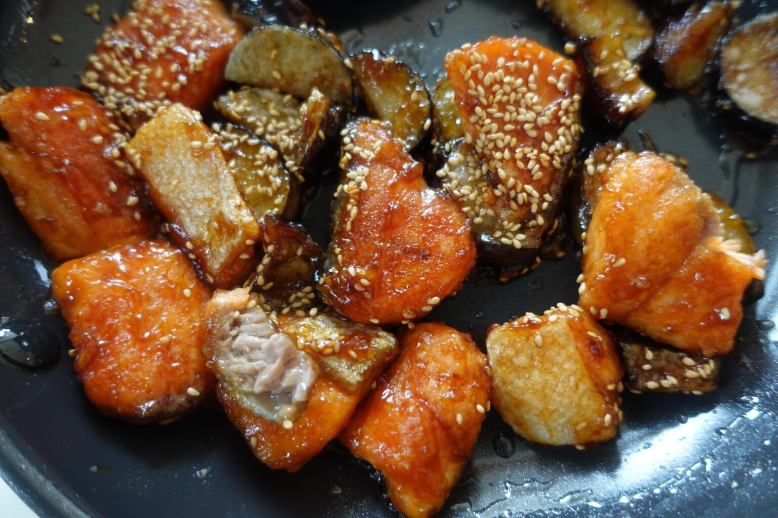 今夜のメインは「鮭となすの照り焼き」。香ばしく焼き上げた鮭にとろとろのなすがおいしいおかずです。白いごはんがモリモリすすむおいしさ。ぜひ作ってみてくださいね。