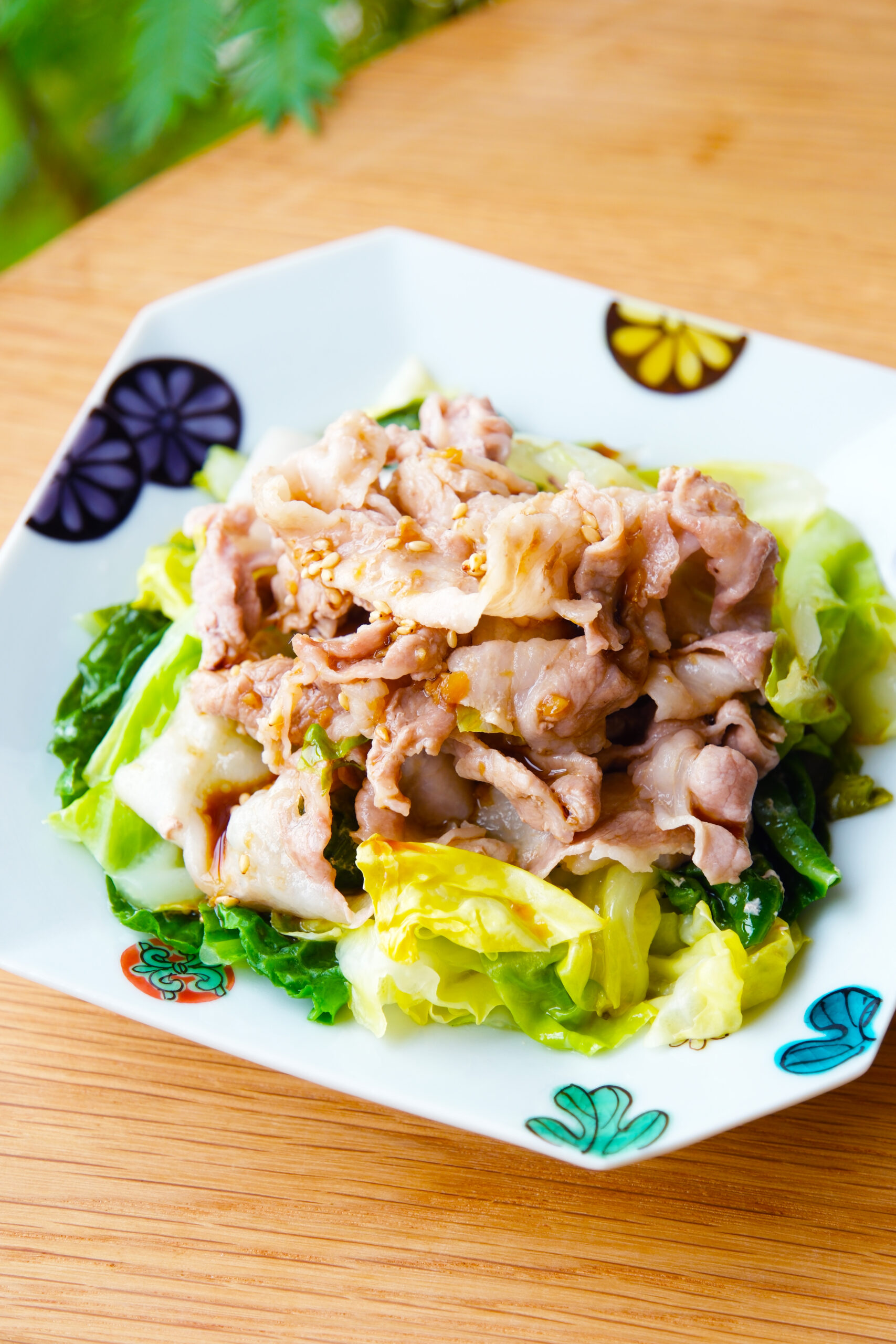 今夜のメインは「豚バラと春キャベツのフライパン蒸し」。疲れた体に染み渡る素材の甘み。重ねて火にかけるだけで春キャベツが驚くほど甘く、お肉はしっとり柔らかに仕上がります◎油を使わずお肉の旨みだけで蒸し上げるからとってもヘルシー!生姜の香りでふんわりと香るポン酢で食べればひと口で疲れが吹き飛びますよ♪