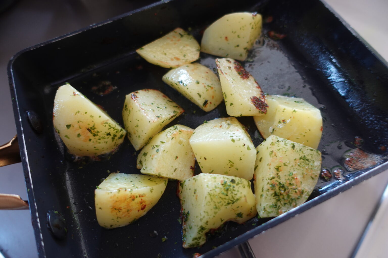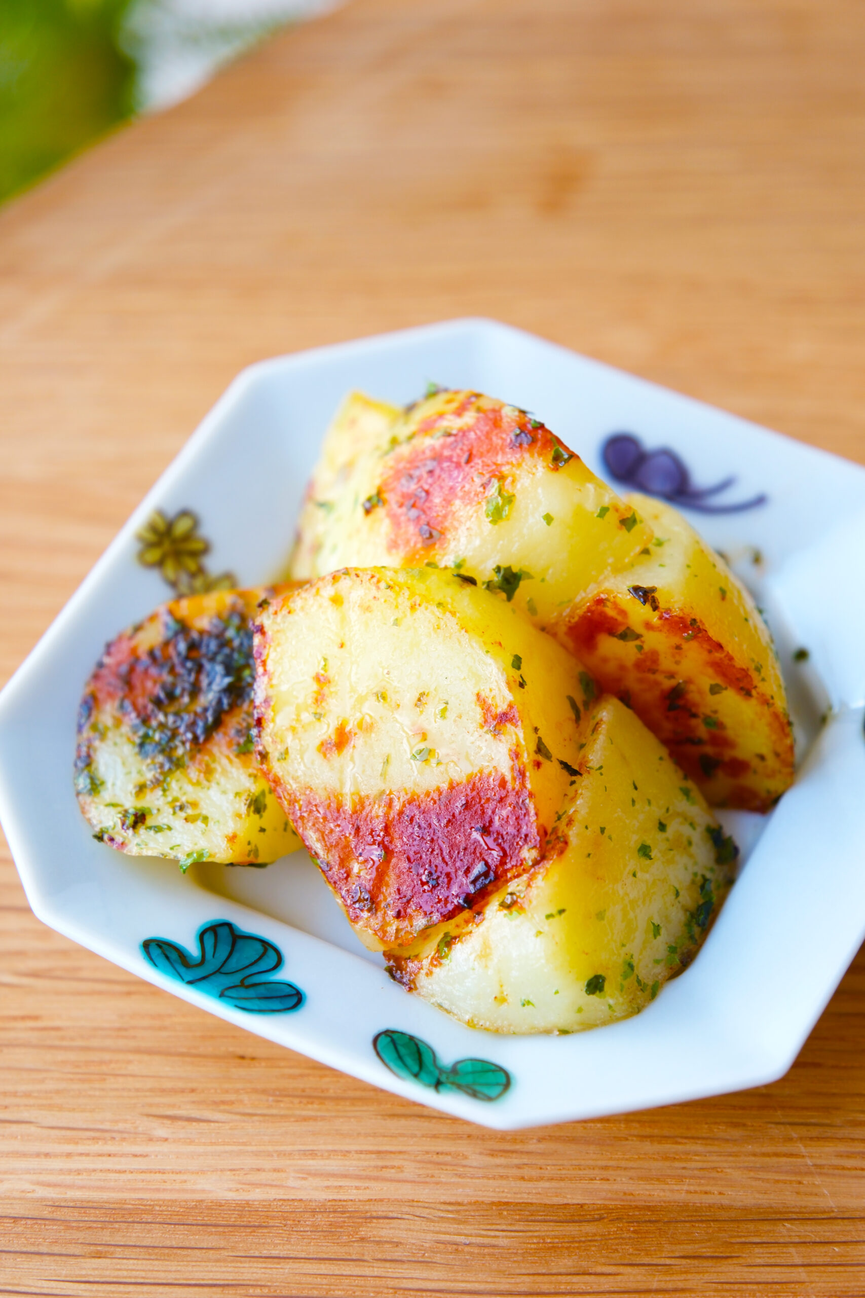 春の味覚、新じゃがいで作る「新じゃがいもの青のりコンソメポテト」。ホクホクのじゃがいもをバターで香ばしく炒めて、コンソメと青のりで香りよく仕上げました!子どもから大人までおいしく食べられる定番メニューです!お弁当の一品にも◎
